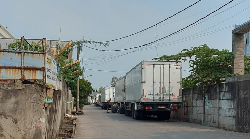 Parkir liar truck kontener menderet di Jalan Kopaja RT 07 RW 04, Rawa Buaya, Cengkareng, Jakarta Barat. (Foto/infomalangnews.com)