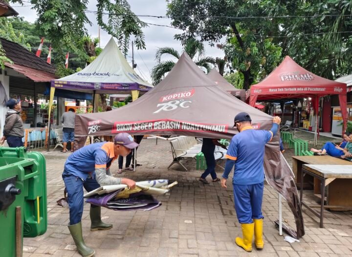“Hari ini Sabtu 15 Maret 2025 tadi sore personel PJLP sudah mulai membongkar sebagian tenda yang ada di taman terminal, rencananya hari Minggu besok tenda besar akan didirikan,” Jelas Revi,