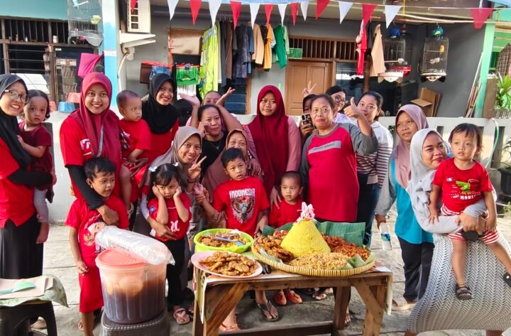 JAKARTA – Warga Jakarta pinggiran meriahkan HUT Ke-80 Kemerdekaan RI, melakukan pemotongan nasi tumpeng tujuh belasan Agustus 2025 di perumahan klaster H. Soleman, RT 13 RW 04, Kelurahan Rawa Buaya, Kecamatan Cengkareng, Jakarta Barat, Minggu (24/8/2025).