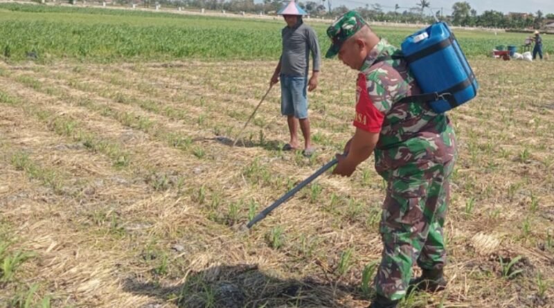 Dukung Program Hanpangan Nasional, Babinsa Ariyojeding Dampingi Pemupukan Jagung