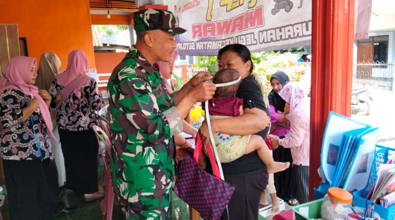 BLITAR – Babinsa Kelurahan Jegu Koramil 0808/09 Sutojayan, Serka Dwijo Seputro Bersama Bidan Desa dan Kader melaksanakan kegiatan pendampingan Posyandu dalam rangka percepatan penanganan stunting yang dilaksanakan di Posyandu Mawar Jl. Dahlia RT. 02 RW. 04 Kelurahan Jegu Kecamatan Sutojayan Kabupaten Blitar, Senin (22/9/2025).