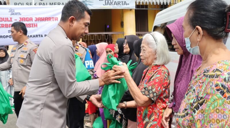Polres Metro Jakarta Barat menggelar Jumat Peduli Jaga Jakarta membagikan sembako kepada warga di halamannPolsek Palmerah, Jumat (3/10/2025). Foto: Istimewa