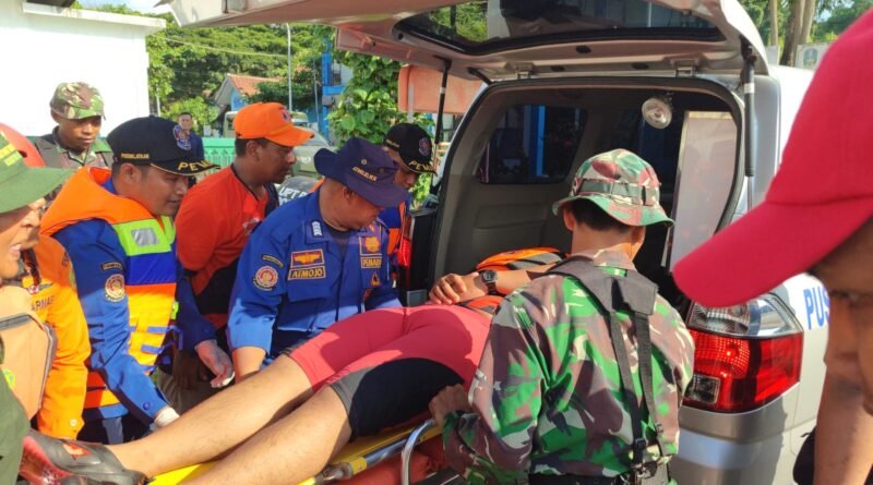 Proses evakuasi di laut dilakukan menggunakan perahu aret guna memastikan seluruh korban dapat segera dibawa ke titik aman dan mendapatkan penanganan medis.