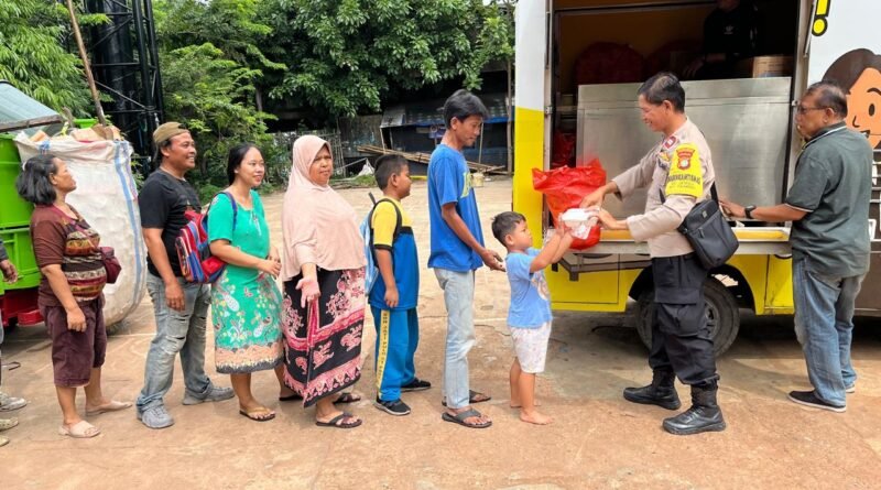 Polsek Palmerah menggelar kegiatan berbagi makanan gratis kepada warga RW 04 Kelurahan Jatipulo, Kecamatan Palmerah, Jakarta Barat, pada Kamis (13/11/2025). Foto: Istimewa