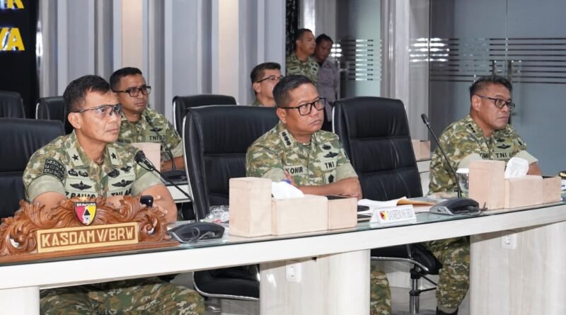 SURABAYA – Komandan Korem 083/Baladhika Jaya Kolonel Inf Kohir mengikuti rapat virtual evaluasi nasional percepatan pembangunan Koperasi Desa/Kelurahan Merah Putih (KDKMP) yang melibatkan seluruh jajaran TNI dan pemerintah daerah, Selasa (2/12/2025). Kegiatan dilaksanakan dari Ruang Bina Yudha Makodam V/Brawijaya.