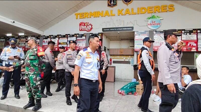 Untuk memastikan keselamatan, keamanan dan kenyamanan, Kepala Terminal Bus Kalideres, Jakarta Barat Nur Prasetyo bersama TNI-Polri menggelar patroli jalan kaki meninjau seluruh loket dan penumpang yang akan berangkat ke kampung halaman merayakan Natal 2025 dan Tahun Baru 2026, Senin (22/12/2025). Foto: infomalangnews.com