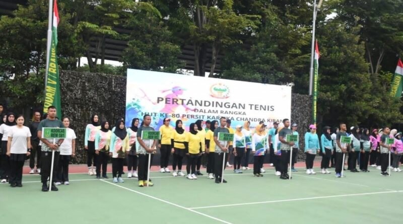 SURABAYA – Ketua Persit Kartika Chandra Kirana (KCK) Daerah V/Brawijaya, Vira Rudy Saladin membuka kejuaraan tenis dalam rangka memperingati HUT ke-80 Persit KCK yang digelar di Lapangan Tenis Brawijaya, Surabaya, Selasa (27/1/2026).