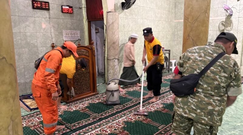 Mulai dari menyapu halaman, membersihkan saluran air, hingga merapikan fasilitas ibadah dilakukan dengan penuh semangat kebersamaan.