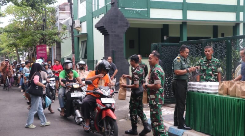 Kodim 0807/Tulungagung menggelar kegiatan berbagi takjil kepada para pengguna jalan yang melintas di depan Makodim, Jumat (20/2/2026). Foto: Istimewa
