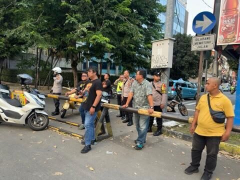 Selain melakukan pemantauan situasi, petugas juga berinteraksi dengan masyarakat dan pengguna jalan untuk memastikan aktivitas masyarakat berjalan dengan aman dan nyaman.