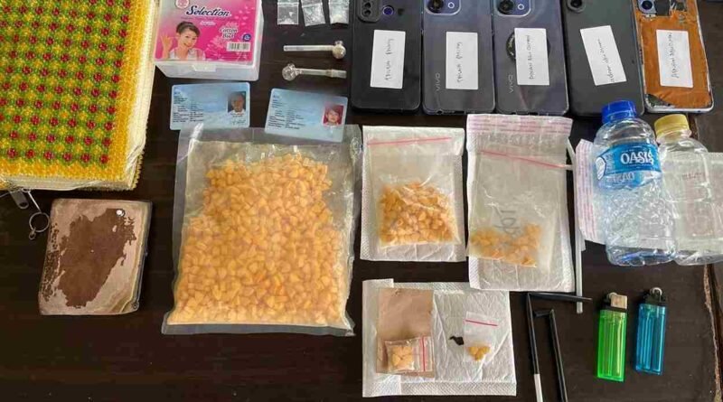 Dari hasil penggeledahan, petugas menemukan barang bukti berupa 1.013 butir pil ekstasi seberat 343 gram, tiga paket sabu seberat 1,27 gram, alat hisap, beberapa unit handphone, serta buku catatan yang diduga terkait transaksi narkotika.