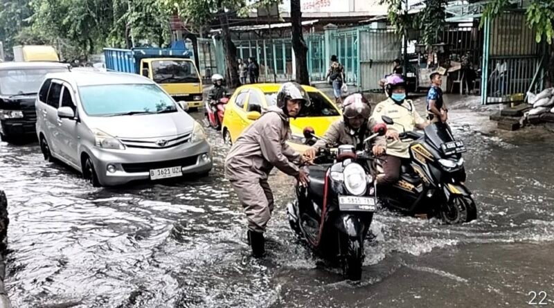 Banjir Kepung Jakarta, Polisi Atur Lalin di Cengkareng Jakarta Barat